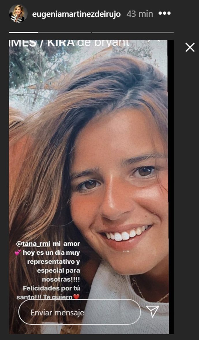 Como no podía ser de otra manera, Eugenia se ha acordado en un día tan especial como hoy de su hija, Tana Rivera, colgando una preciosa imagen de madre e hija donde escribe el siguiente texto: "Mi amor hoy es un día muy representativo y especial para nosotras. Felicidades por tú santo, te quiero".