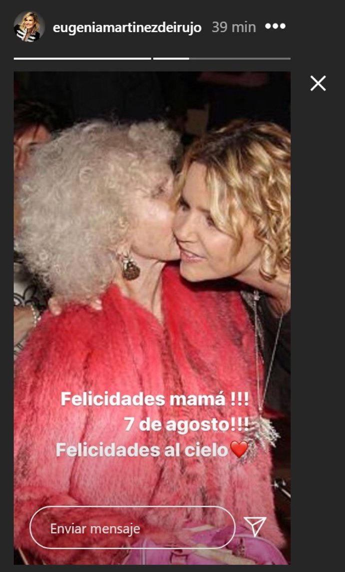 No se podía olvidar de la mujer que la trajo al mundo, la Duquesa de Alba, con la que también ha colgado una fotografía que refleja muy bien la gran complicidad que ambas tenían: "Felicidades mamá, 7 de agosto, felicidades al cielo". Y es que ya sabemos que Eugenia lo pasó tremendamente mal cuando su madre falleció, ya que estaban muy unidas y tenían una exquisita relación.