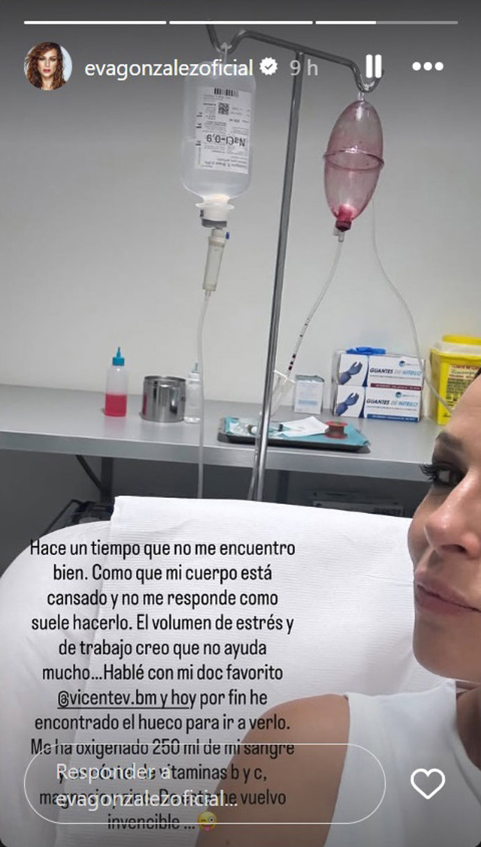 De ahí que aprovechando un hueco en su apretada agenda, ya que está inmersa en las grabaciones de la nueva temporada de 'La Voz' haya visitado a uno de sus médicos de confianza, especializado en medicina estética. "Hoy por fin he encontrado el hueco para ir a verlo. Me ha oxigenado 250 ml de mi sangre y un cóctel de vitaminas b y c, magnesio y zinc. De esta me vuelvo invencible", ha asegurado positiva, convencida de que este 'chute' de vitaminas servirán para recupear la energía.