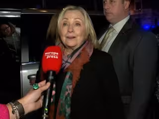 Tras varias horas en el interior del Club Financiero Génova, Hillary abandonaba el lugar con una gran sonrisa y, dando muestras de su cercanía, atendía en exclusiva a los micrófonos de Europa Press para revelar cómo ha sido su visita a España.