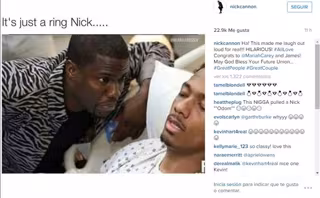 Nick Cannon, famoso actor y comediante estadounidense no ha tardado en mostrar su reacción sobre el reciente compromiso de su exesposa Mariah Carey. El actor se lo ha tomado con humor y una vez más nos ha hecho reír subiendo una imagen a Instagram en la que aparece tumbado en una cama con los ojos cerrados mientras el también comediante Kevin Hart le dice: "Es solo un anillo Nick".