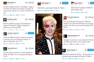 El mundo del cine, la música y otros ámbitos tampoco han sido menos en mostrar palabras de apoyo a la familia y recordar a María de Villota. Raquel Martos, Frank Blanco, Edurne, Dani Martín, Manu Tenorio, Carlos Jean, Soraya Arnelas, Elena Furiase, la mujer de Xabi Alonso, Nagore Aramburu o incluso la propia Carmen Lomana se han echo eco de esta triste noticia.