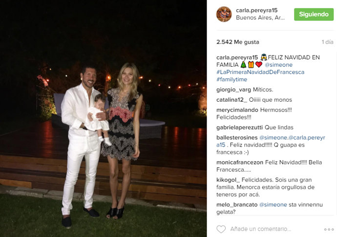 Desde que conociéramos la noticia de que Carla Pereyra y Diego Pablo Simeone eran padres de una preciosa niña llamada Fracesca el 29 de septiembre, la pareja se ha mostrado feliz y la mamá muy entusiasmada con su niña, nos ha hecho partícipes de su crecimiento a través de su cuenta de Instagram en todo momento.