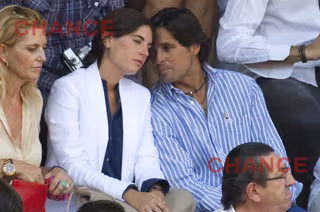 Fran ha acudido vestido con una camisa azul y vaqueros mientras que su esposa iba más arreglada con un look muy chic: shorts vaqueros, camisa azul marino, cinturón de estilo apache y una chaqueta blanca. Todo complementado con un bolso nude muy parecido al que os enseñamos ayer de Caprisa.