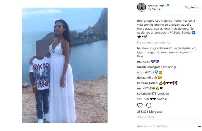 "Los mejores momentos en la vida son los que no se planean, aquello inesperado, con quienes más quieres. No es dónde es con quién", comentaba la joven en su Instagram en una imagen con Cristiano Jr.