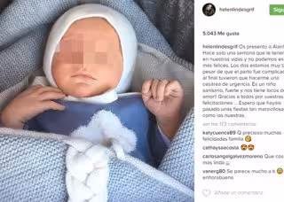 "Os presento a Alan!! Hace solo una semana que le tenemos en nuestras vidas y no podemos estar más felices. Los dos estamos muy bien a pesar de que el parto fue complicado y al final tuvieron que hacerme una cesárea de urgencia. Es un niño sanísimo, fuerte y nos tiene locos de amor!! Gracias a todos por vuestras felicitaciones ... Espero que hayáis pasado unas fiestas tan maravillosas como las nuestras", ha escrito junto a la fotografía en la que puede verse al pequeño que aparece dormidito y con un bonito gorro en la cabeza.