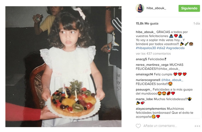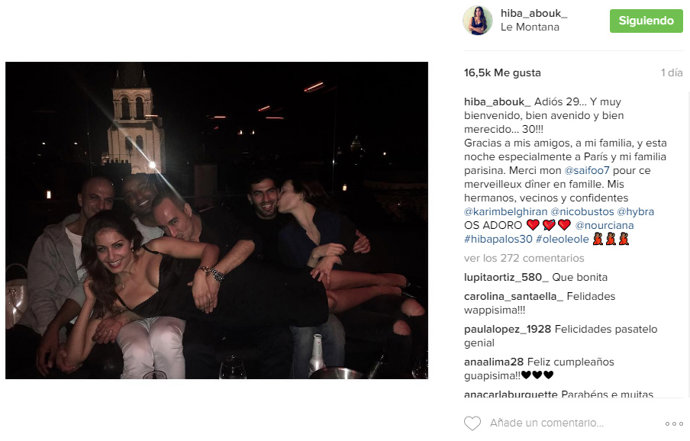 "Adiós 29... Y muy bienvenido, bien avenido y bien merecido... 30!!! Gracias a mis amigos, a mi familia, y esta noche especialmente a París y mi familia parisina", escribió la intérprete de origen tunecino junto a una fotografía en una terraza y tumbada sobre los que ella llama sus "vecinos" y "confidentes". La estrella televisiva compartió más tarde una entrañable fotografía de su tercer cumpleaños para dar las gracias a todos los fans que le habían hecho llegar sus felicitaciones.