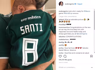 Ha sido Eva Longoria quien ha compartido con sus seguidores la foto del pequeño con la camiseta del equipo mexicano en la que ponía: "Santi, Soy México", en la foto escribía el mensaje: "¡Mirad quién está preparado para el partido de México!".