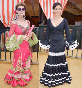 Inés Sastre, que pasa la mayor parte de su tiempo en Francia, ha viajado hasta Sevilla para disfrutar de unos días de feria. La modelo, con un escotadísimo vestido de flamenca negro con volantes en blanco y una gran flor en el pelo, es una enamorada de Sevilla y, este año, no ha querido perder la oportunidad de pasear por el Real.