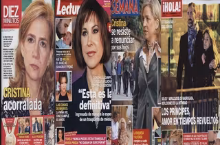 La revista Diez Minutos muestra en su portada a la Infanta Cristina "acorralada" según la publicación. La hija del Rey está muy triste porque el ayuntamiento de Palma ha retirado una placa con su nombre y el de su marido Iñaki Urdangarín de una calle, la revista cuenta que la Infanta está tocando fondo debido a todas las acusaciones que la relacionan, la imputación de su secretario personal, la fianza de su marido, y el aislamiento social en el que vive donde no se deja ver con su marido, todos estos problemas le han sumido en la tristeza.
