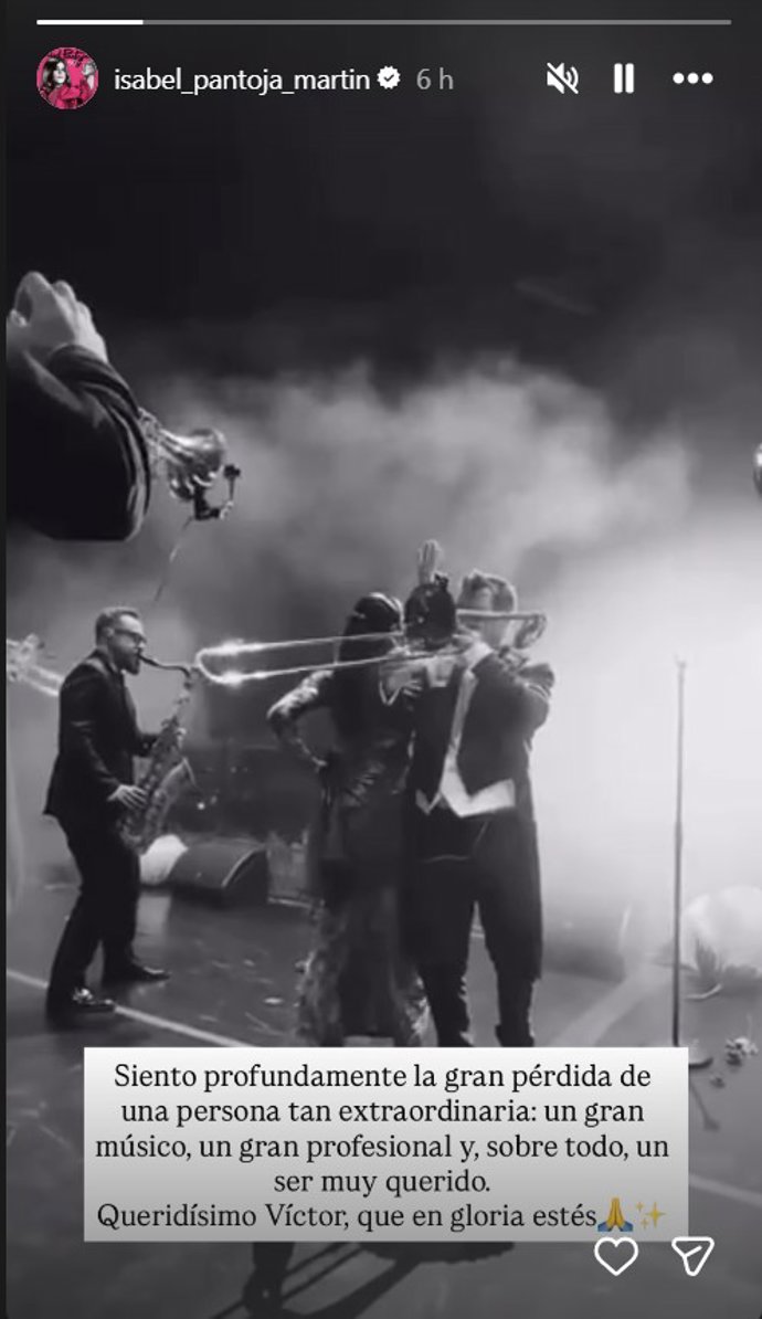 Compungida por la pérdida y con la necesidad de mostrar su dolor públicamente por la pérdida de una persona que la ha acompañado durante muchas horas sobre el escenario en su última hora '50 años', Isabel ha escrito en su cuenta de Instagram unas bonitas palabras acompañadas de un vídeo en el que aparece junto a él: "Siento profundamente la gran pérdida de una persona tan extraordinaria: un gran músico, un gran profesional y sobre todo un ser muy querido. Queridísimo Víctor, que en gloria estés".