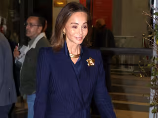 Apasionada de la ópera, Isabel Preysler no se ha perdido este martes uno de los estrenos más esperados de la temporada en el Teatro Real de Madrid, 'La Novia Vendida'. En solitario en esta ocasión aunque habitualmente suelen acompañarla Tamara Falcó e Íñigo Onieva, la 'reina de corazones' ha vuelto a dar una lección de sofisticación y elegancia con un impecable traje sastre satinado de rayas en diferentes tonalidades de azul marino, blusa de seda a juego, salones clásicos en negro, y rompedores complementos en dorado: maxi broche con forma de flor en la solapa, clutch metalizado, y gargantilla con doble vuelta, acaparando todas las miradas a su llegada al espectáculo, en el que ha coincidido entre otros rostros conocidos con Amparo Corsini, Cari y Myriam Lapique, o Emiliano Suárez.