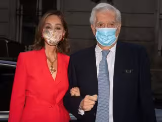 Para esta fecha tan importante para Mario Vargas Llosa, Isabel Preysler, fiel compañera de vida y el mejor apoyo que puede tener el escritor, ha acudido al homenaje con un conjunto con el que nos ha dejado a todos con la boca abierta. Se trata de un traje de color rojo, de blazer con atadura por encima de la cintura y escote de pico, con el que ha derrochado nuevamente esa elegancia. Por supuesto, mascarilla con estampado a juego y un colgante con forma de cruz dorado que le aporta luminosidad a su rostro.