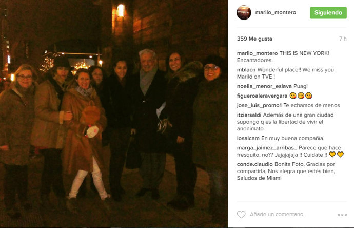 Mariló se ha encontrado por la Gran Manzana con Mario Vargas Llosa e Isabel Preysler y no ha perdido la oportunidad de capturar el momento. La pareja formada por el escritor y la socialitie ha aprovechado su paso por México, para hacer una parada en la ciudad de los rascacielos, disfrutando de un fin de semana en pareja mientras los rumores de boda no dejan de suceder.