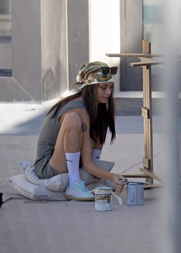 Lejos de optar por el descanso, Marina también quiso aportar su granito de arena en este nuevo proyecto para el que le vimos pintando gran parte del mobiliario. Sentada en el suelo y aparentemente cansada, la joven también recibió la visita de una pareja de amigos que le regalaron un gran ramo de flores a modo de apoyo, un gesto que Marina recibió con un abrazo y una sonrisa hacia su amiga que llegaba con un bebé al que también Tudela (padre) le dedicaba algunos arrumacos.