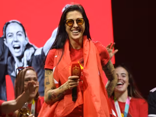 Sin querer pronunciarse sobre el 'perdón' de Rubiales por su beso, la jugadora ha preferido no pronunciarse sobre el tema ni revelar si está molesta con el presidente de la RFEF. "Somos campeonas del mundo, ¿no? ahora mismo creo que es demasiado ahora" ha zanjado, esquivando la polémica. Sus declaraciones, ¡en el siguiente vídeo!