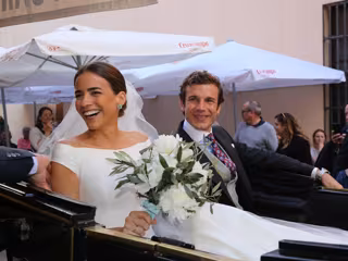 Tras la ceremonia y ya convertidos en marido y mujer, Joaquín Astolfi y Alba Valenzuela han recibido el cariño de todos los suyos. Después de darse uno de sus primeros besos como recién casados, la pareja abandonaba Triana en un coche de caballos. Ha sido precisamente ahí donde la pareja se ha mostrado tranquila y más relajada, llegando a bromear incluso con algunos de sus invitados, a los que han mostrado sus alianzas.