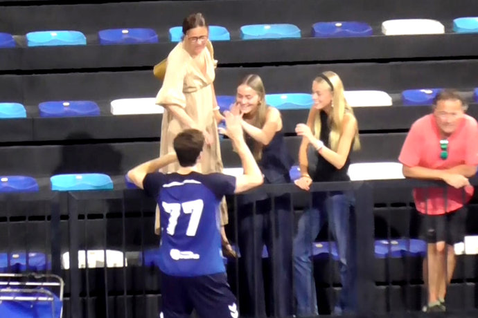 Pablo Urdangarin y Johanna Zott han protagonizado este fin de semana una imagen de pareja consolidada y feliz durante el primer partido de la temporada del Fraikin BM Granollers. La joven acudió a las gradas acompañada por su madre, Elena Sophie, y su hermana pequeña, llevando una llamativa bolsa de regalos con un estampado de corazones.