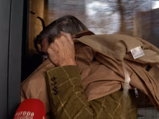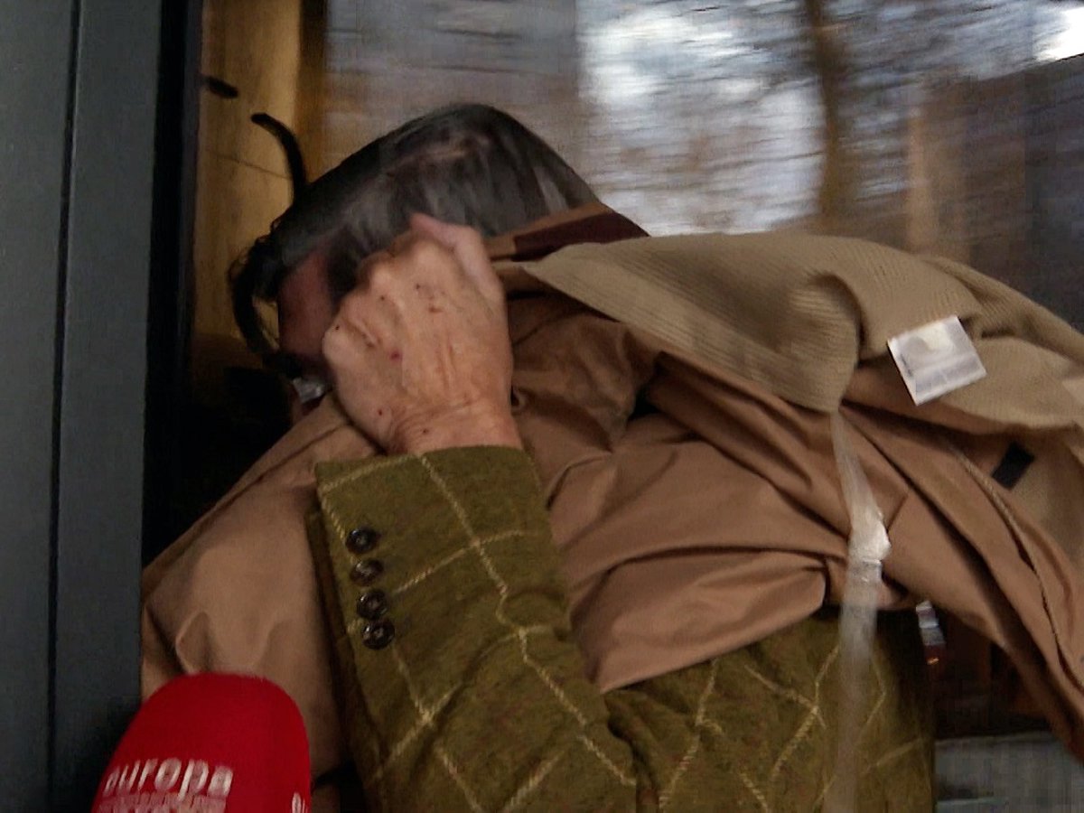 La pareja de la diseñadora llegaba este jueves a su puesto de trabajo y se tapaba el rostro con el abrigo para evitar ser captado por las cámaras y gritaba: "¡No soy Patón, soy su hermano! ¡No soy Patón, soy su hermano!".