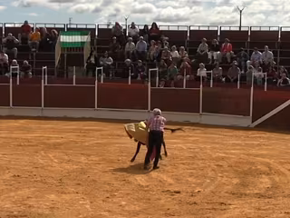 Demostrando su gran profesionalidad y que todavía sigue en pleno nivel, Ortega se animó y bajó hasta el ruedo para torear una vaquilla... lo que nadie se imaginaba es que iba a tener un pequeño amago de cogida, ya que en un momento determinado, el torero perdió el control de la situación tras torearla y esta le dio varios cabezazos... provocando que sus compañeros salieran a la plaza a echarle una mano.