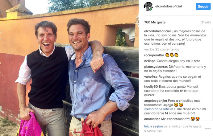 "Tarde muy especial de tentadero con @elcordobesoficial". El joven torero, aparece junto a su hermano Manuel, los dos de lo más sonrientes y es que parece que entre ambos hay bastante feeling y se llevan a las mil maravillas.