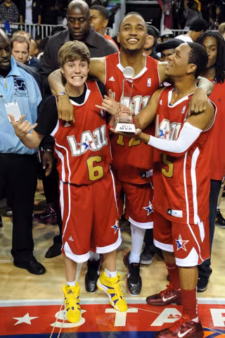 Justin Bieber volvía a demostrar, una vez más, que su 1'65 centímetros de altura son puro talento. El joven ha sorprendido a todos anotando ocho puntos, cuatro asistencias y dos rebotes durante el último partido de famosos organizado por la NBA y que enfrenta dos equipos, Este y Oeste, compuestos por los mejores jugadores del momento, ex estrellas del baloncesto y celebridades del mundo del espectáculo.
