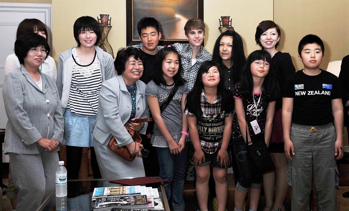 La estrella quiso conocer de primera mano cómo están sobrellevando la tragedia así que organizó el encuentro en la residencia del embajador de Estados Unidos en Japón. Bieber dijo a los jóvenes que eran "una inspiración" y trató de darles ánimos diciendo: "Las cosas pueden ir mejor y van a ir mejor. Ahora sólo van a venir tiempos buenos".