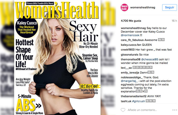 Kaley Cuoco, portada del mes de diciembre en Women's Health, ha confesado que no todo su físico es natural. La protagonista de The Big Bang Theory, una de las comedias más vistas en todo el mundo, ha revelado a la publicación haberse sometido a una operación de nariz y de pecho.