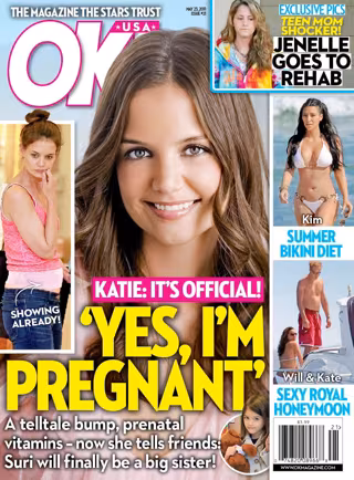 Katie Holmes y Tom Cruise están esperando un segundo bebé, o eso afirma la revista 'OK!', que lleva en portada una fotografía de la joven con la leyenda "sí, estoy embarazada". Sus amigos se han encargado de desvelar la noticia a los medios, mientras que su representante lo niega.