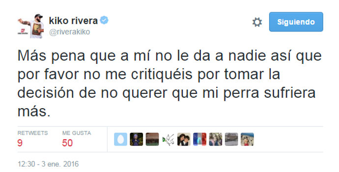 KIKO RIVERA: "NO ME CRITIQUÉIS POR TOMAR LA DECISIÓN DE NO QUERER QUE MI PERRA SUFRIERA MÁS"