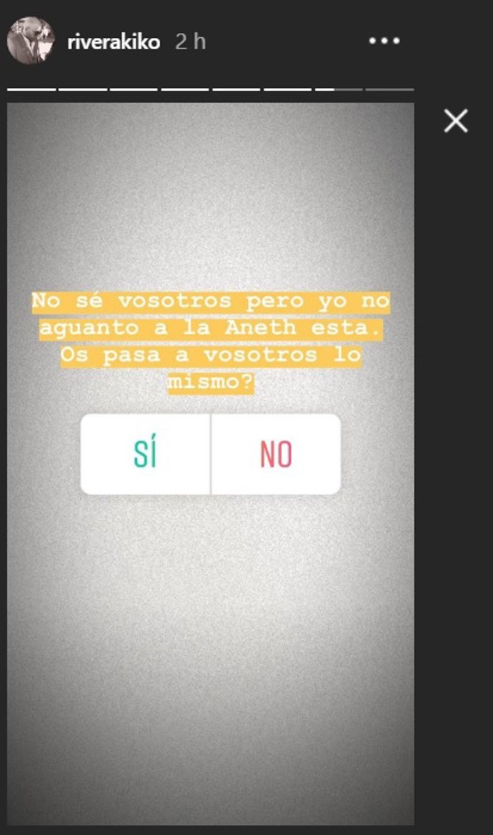 Kiko Rivera no ha tenido tiempo de contestar a su hermana pero sí de posicionarse en contra de Aneth, la amiga de su hermana y la que pretende ser la mano derecha de Isabel Pantoja en Honduras. Lo ha hecho vía Instagram, colgando una historia en la que realiza una encuesta para saber si sus seguidores aguantan o no a Aneth.