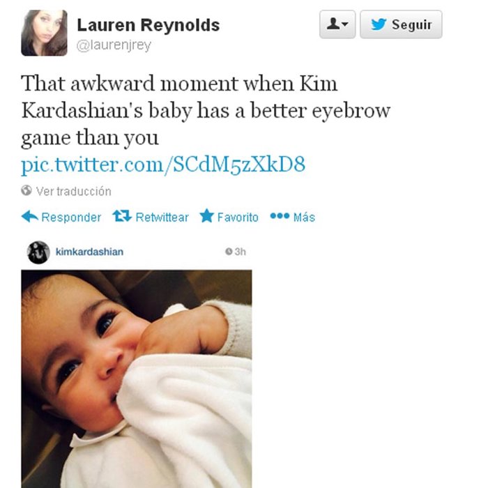 "Kim K definitivamente ha retocado las cejas de su bebé" o "Juro que en la foto de instagram de Kim Kardashian de su bebé, las cejas están perfiladas y enceradas" o "Ese momento incómodo cuando el bebé de Kim Kardashian tiene mejores cejas que tú", son algunas de las críticas en las que se hace hincapié en que Kim Kardashian ha hecho que las cejas de su hija luzcan perfectamente, sometiéndose a tratamientos de estética desde pequeña.