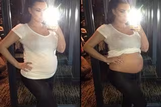 Kim Kardashian, se levanta la camiseta frente al espejo y nos enseña su embarazada tripa. La modelo ha colgado la foto en su Instagram y Twitter sin ningún tipo de complejos y es que la modelo ya lleva 6 meses de embarazo.
