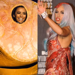 Primero fue Bruce Willis y ahora se ha subido al carro la actriz y presentadora Eva Longoria. Por si el vestido de Lady Gaga hecho de trozos de carne en la pasada gala de los VMA no había levantado suficientes críticas, la protagonista de 'Mujeres Desesperadas' quiso revivir esa imagen y no dudó en disfrazarse de jamón en la gala de los premios MTV celebrada hace unos días en Madrid. Eva se lo pasó genial, pero a Lady Gaga parece no haberle hecho mucha gracia.
