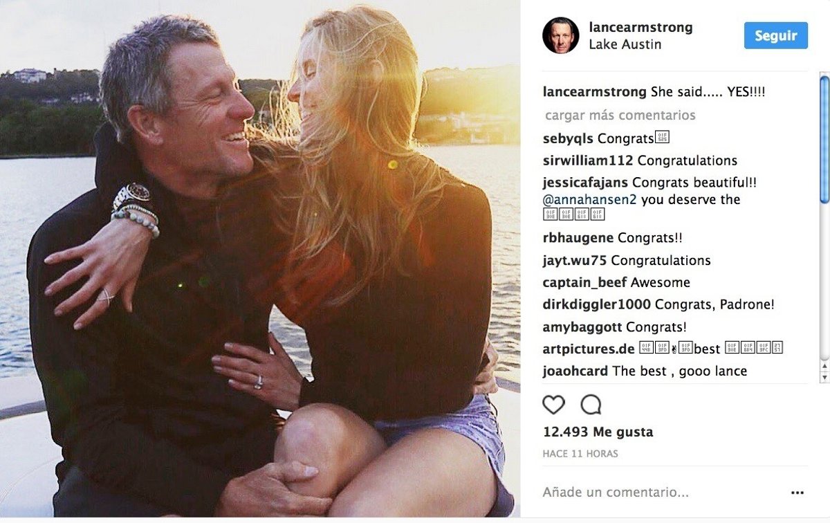 Lance Armstrong contraerá matrimonio con su pareja y socia, Anna Hansen. Catorce años después de su divorcio de Kristin Richard, con la que estuvo casado cinco años y tuvieron tres hijos en común (Grace, Isabelle y Luke), el exciclista volverá a pasar por el altar esta vez con Anna Hansen, su compañera sentimental en la última década y madre de sus dos hijos pequeños: Max (7) y Olivia (6).