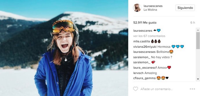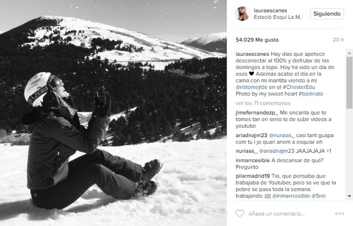 El lugar elegido ha sido la estación de esquí de la Molina en el Pirineo Oriental, en el municipio de Alp, comarca de la Cerdaña, provincia de Gerona. Tal y como prometía Escanes, en su cuenta de Instagram, antes de embarcarse en su maravilloso fon de semana en la nieve, la modelo colgó una instantánea en Instagram advirtiendo que se había propuesto como objetivo tomarse más fotos y compartirlas, porque al parecer son pocas las que ya tienen.