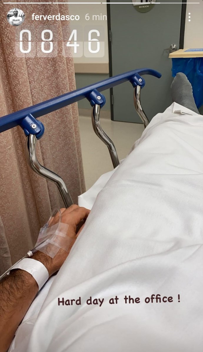 En ella podemos ver como el jugador de tenis se encuentra en una camilla de hospital tumbado, habiendo puesto en la imagen una frase que nos ha dejado muy preocupados: "hard day at the office" y con una vía puesta en el brazo. No sabemos si se trata de un chequeo rutinario o es que le ha pasado algo por lo que ha tenido que ser ingresado de urgencia.