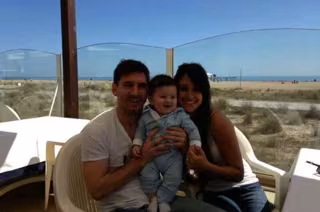 En la foto el futbolista sale junto a su hijo y a su mujer, Antonella, disfrutando de un buen día de playa.