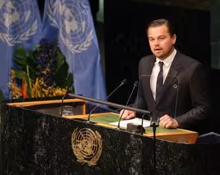 "El planeta no se salvará si no dejamos los combustibles fósiles bajo tierra, donde pertenecen", advirtió el actor de 41 años ante los líderes del mundo siete meses después de hacer su primera intervención como Mensajero de la ONU para el Cambio Climático.