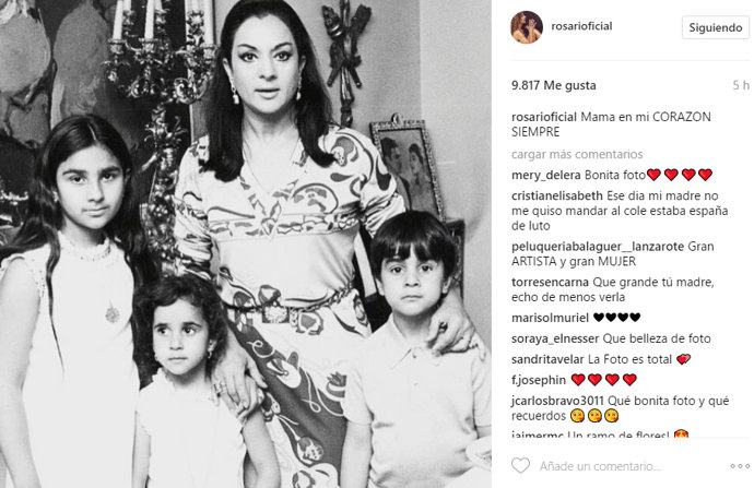 Pero este 16 de mayo tanto Lolita como Rosario han aprovechado las redes sociales para recordar momentos de su vida al lado de su madre. Rosario ha compartido una tierna imagen de cuando era una niña, al lado de la artista y sus dos hermanos en blanco y negro. "Mamá en mi CORAZÓN SIEMPRE" ha sido el escueto pero cargado de significado mensaje que acompaña a la imagen.