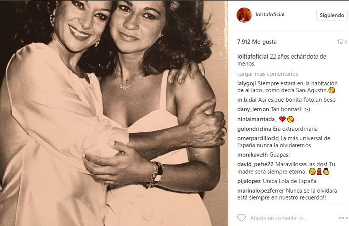 Por su parte Lolita Flores ha compartido una fotografía de los inicios de su carrera abrazada a su progenitora al lado del mensaje: "22 años echándote de menos".