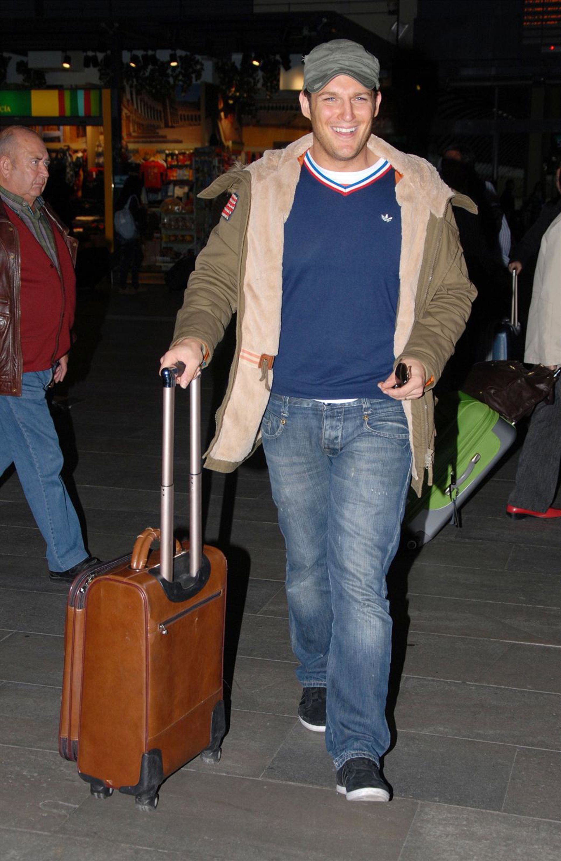 Manu Tenorio llegó a la estación de Santa Justa de Sevilla el pasado lunes para cumplir con sus compromisos. Vestido de manera informal con vaqueros, camiseta azul marino y chaquetón verde con gorra a juego, lucía una enorme sonrisa, reflejo del estupendo momento que vive.