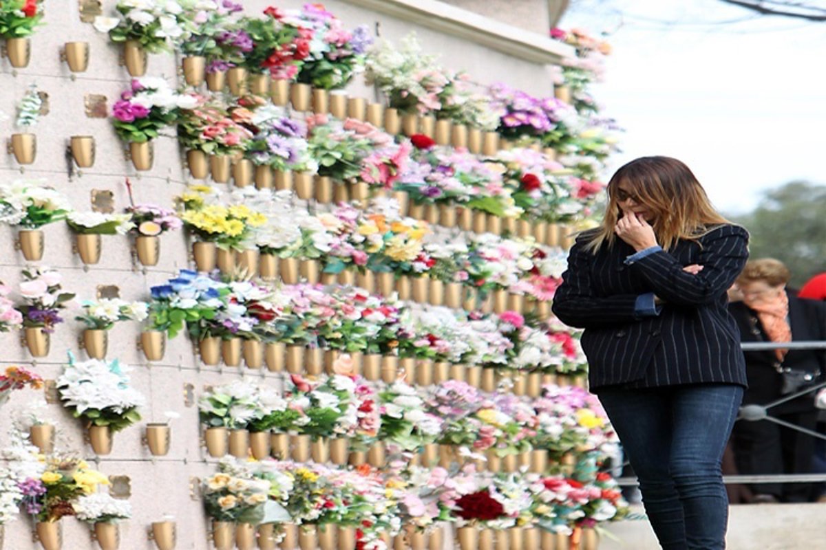Después de largos minutos rezando ante el columbario, Mar Flores volvía a ponerse en pie, con lágrimas en los ojos y con las manos en los bolsillos abandonó finalmente el campo santo.