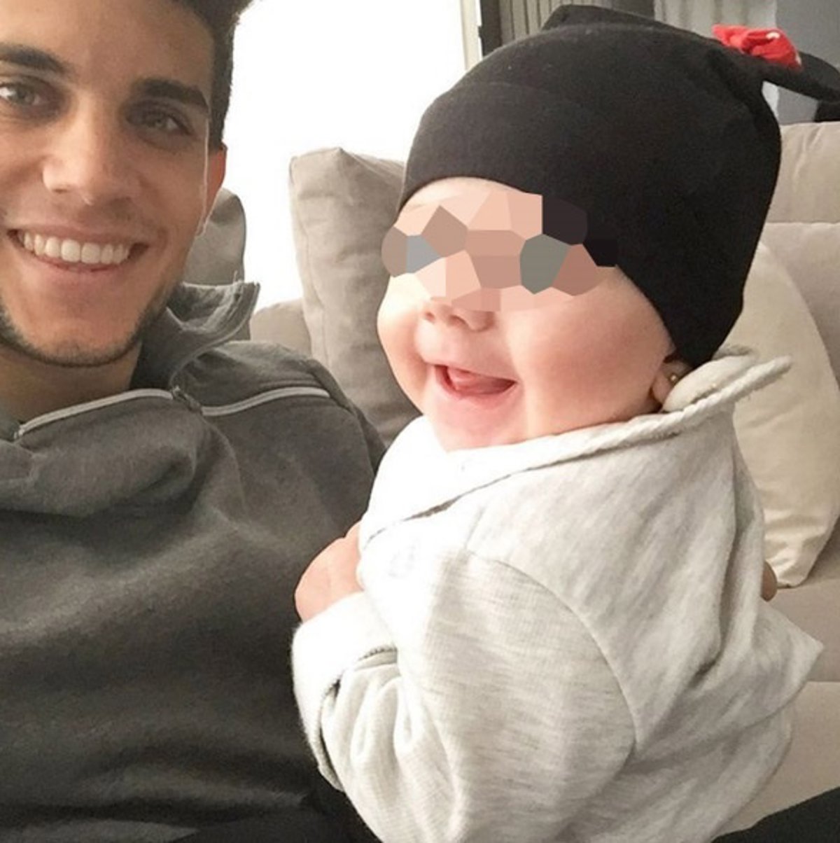 Marc Bartra no puede resistirse a los encantos de su pequeña princesita, Gala. La pequeña tiene casi 4 meses y su padre no puede estar separado de su pareja Melissa Jiménez y su hija.