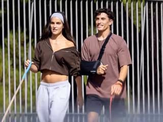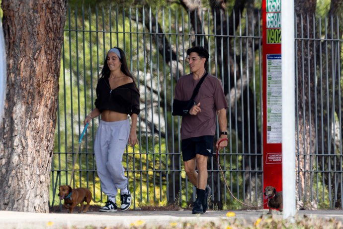 Aprovechando un hueco, la pareja disfrutó de un agradable paseo por las calles de la ciudad, dejándose ver como cualquier otra pareja de enamorados. Muy cercanos y cómplices, ambos recorrieron algunas de las calles del centro de Madrid en compañía de su mascota. Con una gran sonrisa en el rostro, Marc lució su brazo en cabestrillo tras conocerse que sufre una fractura en la base de la apófisis coracoides del hombro derecho, además de una fuerte lesión de ligamentos en la misma articulación.