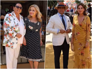 Entre los rostros conocidos que han brillado en la Puerta de Sevilla destaca Begoña García-Vaquero, esposa del empresario Pedro Trapote, que ha elegido un clásico carromato de caballos para un paseo. A pocas escenas de allí, Inmaculada Casal y María del Monte se han convertido en el centro de atención al posar juntas a las puertas de una caseta, rotundas y elegantes, dejando claro que siguen siendo dos de las reinas de la fiesta.