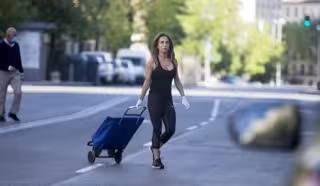 De regreso a casa, la colaboradora cargó con un carrito de la compra completamente lleno además de una bolsa que tuvo que llevar colgada en el brazo. Aunque esta vez María no llevaba mascarilla como protección contra el COVID-19, sí que optó por los guantes de látex.
