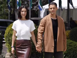 De la mano, sonrientes y demostrando que su amor está en el aire, la pareja ha aparecido con dos looks muy sofisticados para la ocasión... sobre todo porque no han pasado desapercibidos.