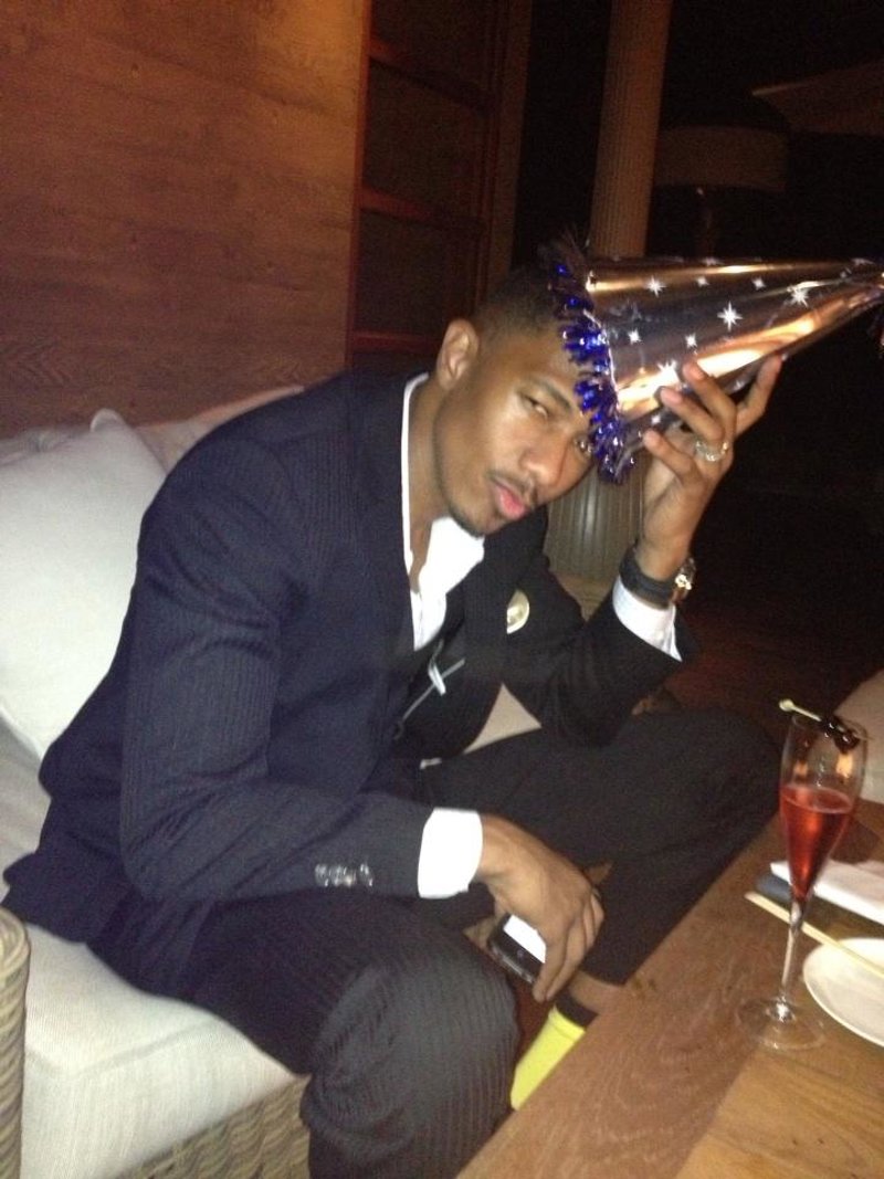 Mariah, que lucía un mini vestido negro con los laterales plateados, escribió en su cuenta de Twitter "¡En la fiesta! ¡Feliz cumpleaños @nickcannon!", acompañado de una foto de ella sentada en su regazo, ambos con gorritos de papel. Más tarde escribió "¡Mi marido en su fiesta de cumpleaños!", con una foto de Cannon posando para su mujer.