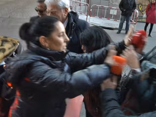 Mario Vargas Llosa ha regresado ya a Madrid después de que el jueves pasado ingresara en la Academia Francesa y lo ha hecho a lo grande, por la zona vip del aeropuerto, acompañado por una azafata y subiéndose a un vehículo de alta gama para dirigirse hasta su caso. Si este viernes nos quedábamos sorprendidos por la actitud chulesca y desafiante de su hija Morgana ante los medios de comunicación, lo que se ha vivido hoy en la puerta de la casa del escritor, no tiene nombre.